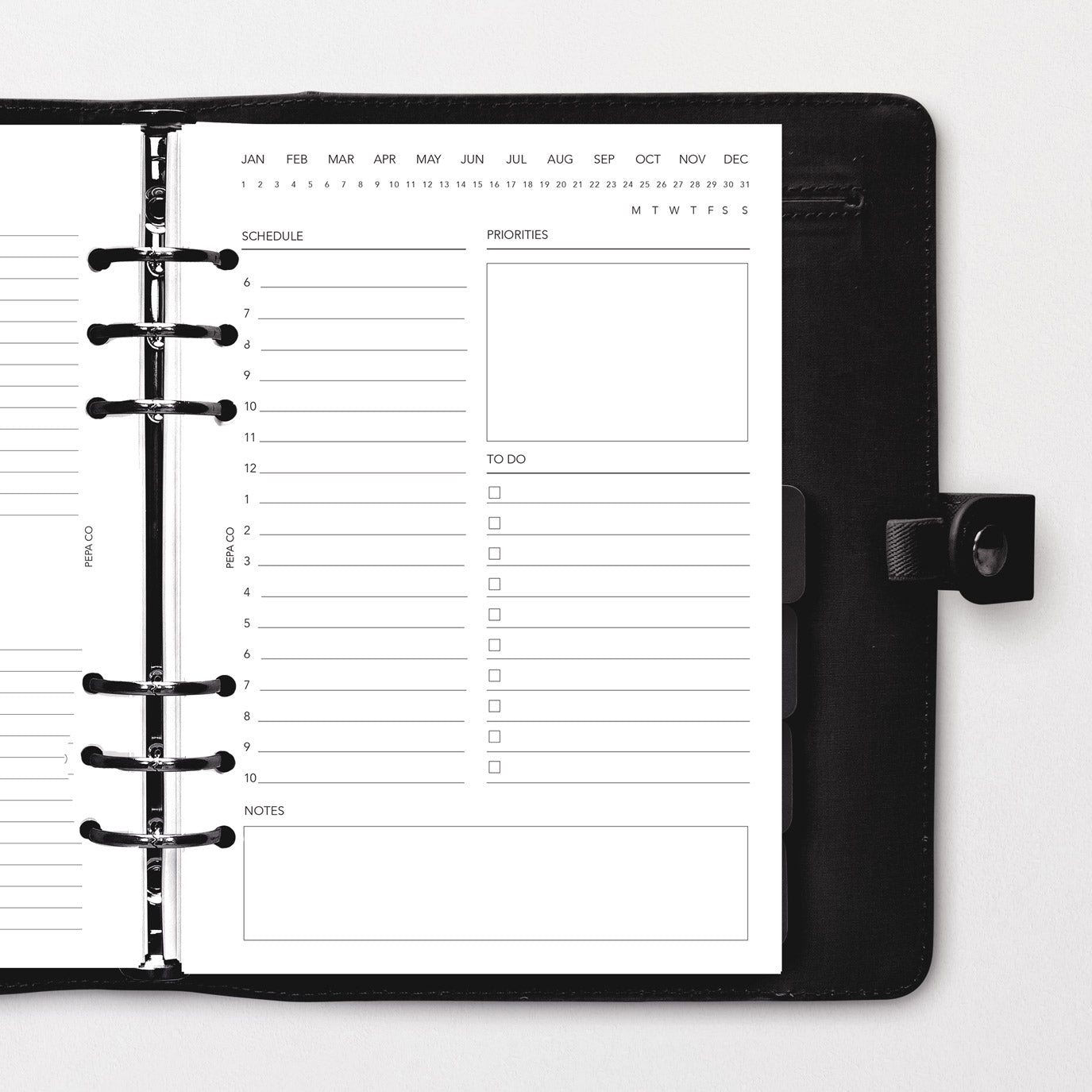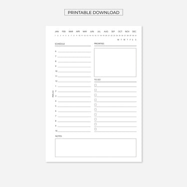 Our PRINTABLE daily schedule planner inserts are great for busy days as they include Notes, Priorities, an Hourly Schedule and a To Do List. Just highlight or circle the month and day on top!